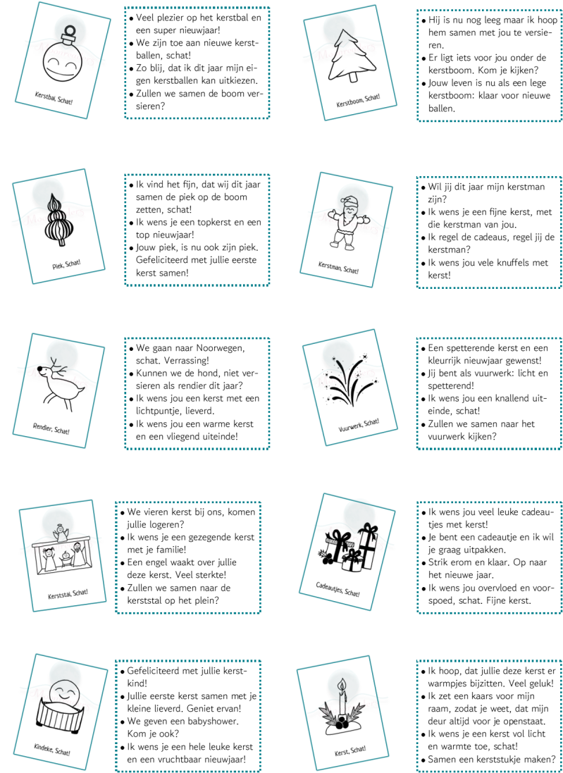 Schat! kaarten voorbeeldzinnen